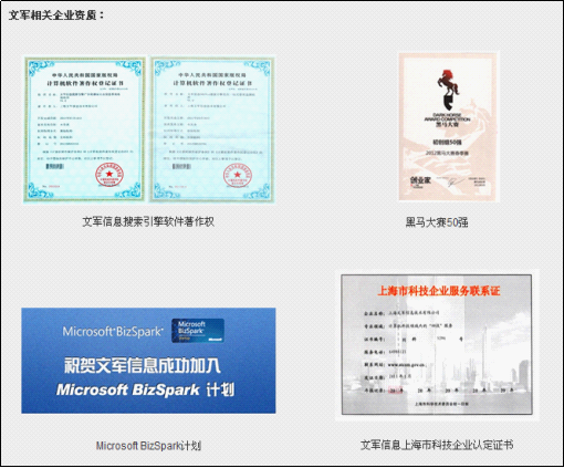 如今,文軍信息已為五百?gòu)?qiáng)、上市公司、大型國(guó)企、行業(yè)新銳等數(shù)百家客戶(hù)提供了SEO優(yōu)化服務(wù),得到他們的認(rèn)可。也多次被新浪、搜狐、騰訊科技撰文介紹,央視電視臺(tái)《奮斗》進(jìn)行采訪(fǎng)報(bào)道,并作為的SEO公司進(jìn)入創(chuàng)業(yè)家2012黑馬大賽50強(qiáng)。作為雙軟認(rèn)證科技企業(yè),擁有多項(xiàng)搜索引擎優(yōu)化軟件著作權(quán)的文軍信息已經(jīng)具備了服務(wù)500強(qiáng)大公司的能力,也具備了更好的發(fā)展良機(jī)。